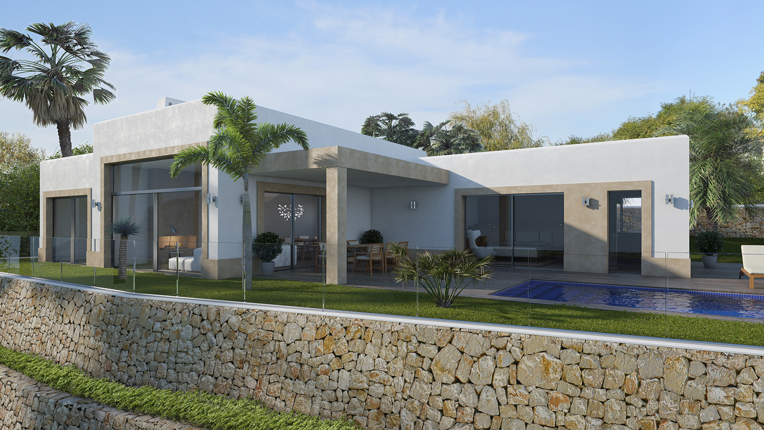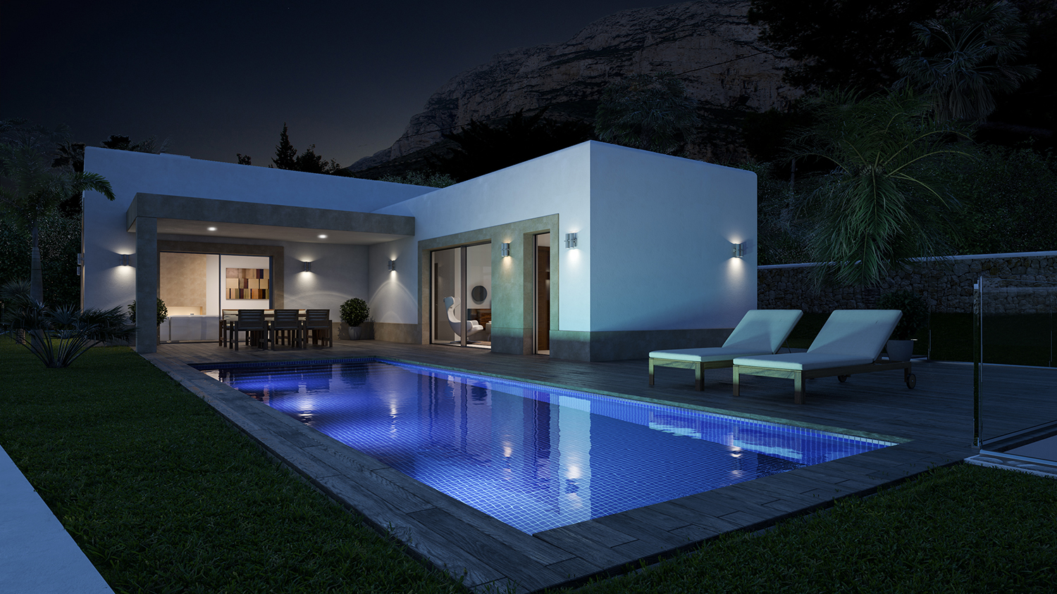 Freistehendes Einfamilienhaus mit Wohnzimmer, Esszimmer, 3 Schlafzimmern, 2 Bädern, Garage, Terrasse und Pool.