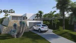 - Garage mit elektrisch betriebenem Sektionaltor.