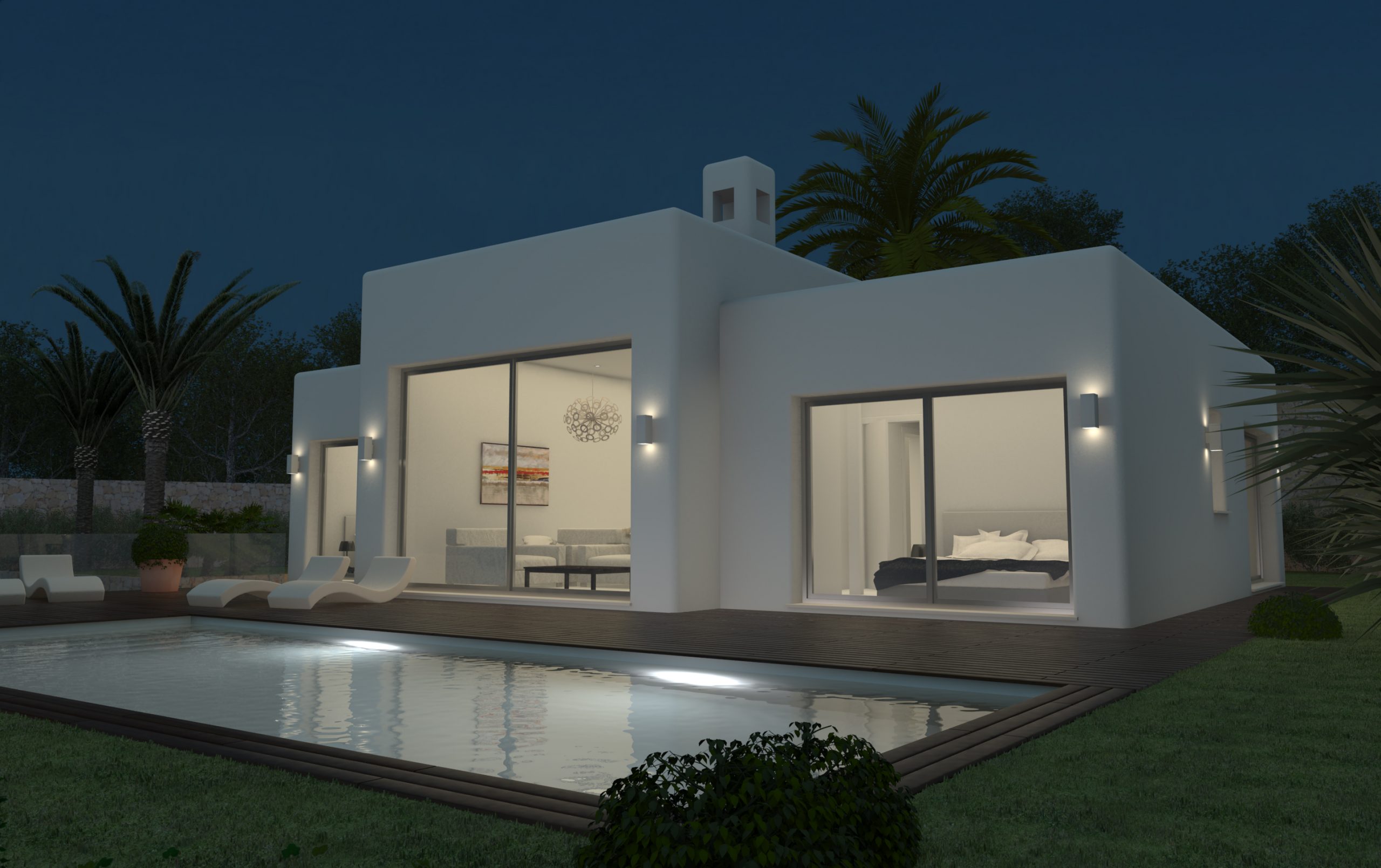 Freistehendes Einfamilienhaus mit Wohnzimmer, Esszimmer, 3 Schlafzimmern, 3 Bädern, Terrasse und Pool.