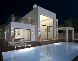 Freistehendes Einfamilienhaus mit Wohn- und Esszimmer, 4 Schlafzimmern, 3 Bädern, Terrassen und Pool.