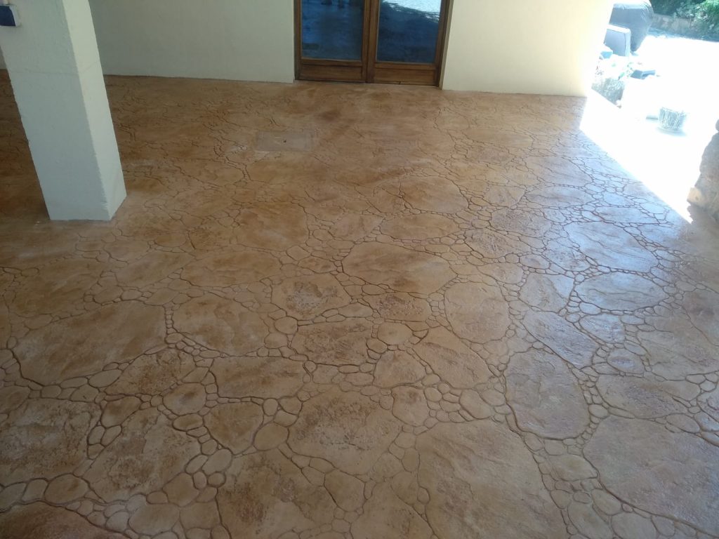 Prägebeton ist die ideale Lösung für ansprechende und langlebige Boden- und Wandgestaltungen. Durch spezielle Prägeverfahren entstehen auf der Betonoberfläche vielfältige Strukturen und Muster, die natürliche Materialien wie Stein, Holz oder Ziegel authentisch nachbilden. Dieses vielseitige Material ist besonders robust, witterungsbeständig und pflegeleicht, was es perfekt für den Einsatz im Innen- und Außenbereich macht.